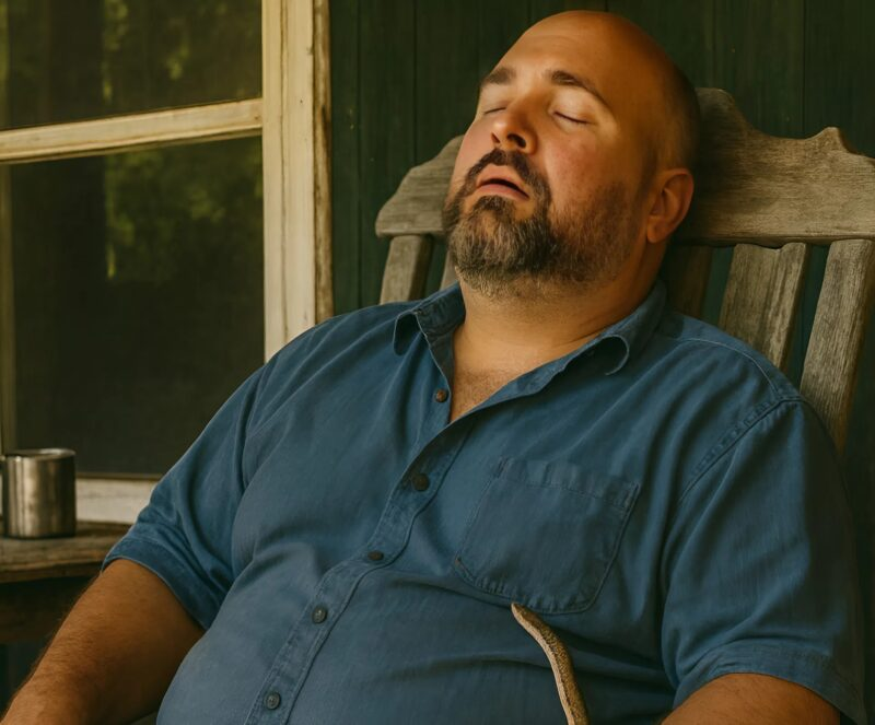 Cautiously, it crept toward the steps, as if it could sense the warmth of the human body and the scent of sweat. The man slept deeply, not even stirring when the snake’s cold body brushed against his shoe and began to climb slowly up his pant leg.