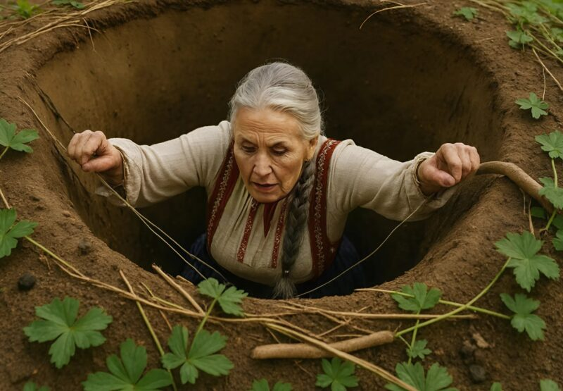 Perhaps ten minutes passed before she noticed that one side of the pit looked different — the soil there was darker, denser, as if it had been packed down.