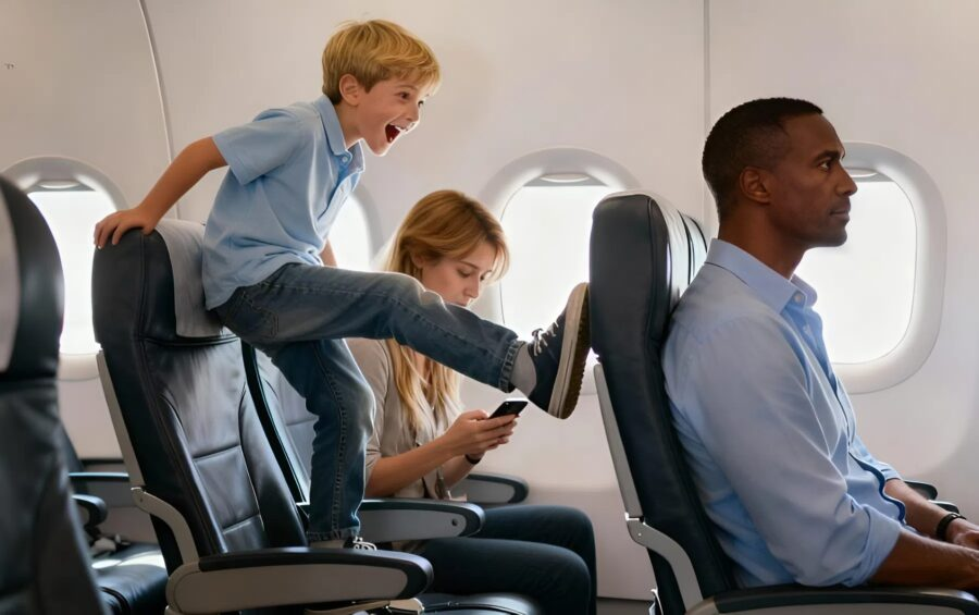 😦 During my last flight, a seven-year-old boy kept hitting my seat: nothing would calm him down, so here’s what I decided to do.