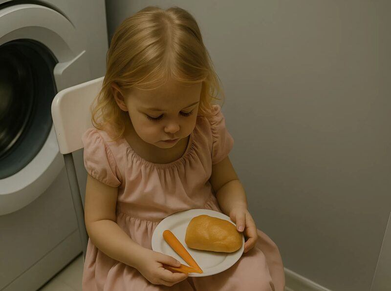 Every time I called her for lunch, she refused to sit at the table. Instead, she would take her plate to the bathroom, where she had already placed a small chair. There, she would lock the door and only then start eating. When she was finished, she would come out with an empty plate, as if nothing unusual had happened.